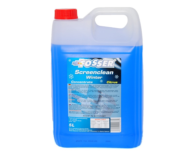 FOSSER Screenclean Winter Concentrate не допускает замерзания системы стеклоомывателя в холодное время года и обеспечивает хороший обзор в дорожном движении благодаря интенсивному чистящему действию. Легко удаляет жир и остатки дорожной соли, не оказывая отрицательного воздействия на лакокрасочное покрытие и резиновые элементы автомобиля. Совместима с поликарбонатом и подходит для форсунок с веерным распылением. Благодаря содержанию добавок для удаления насекомых продукт может применяться круглый год. FOSSER Screenclean Winter Concentrate не содержит метанола, смешивается с водой и имеет температуру воспламенения выше 21°C, не подпадая под действие положений норматива о легковоспламеняющихся жидкостях.